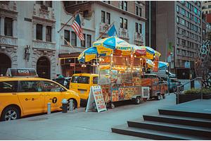 Street Vendor in Front of the Warwick Hotel Fujica GW690 Cinestill 50D